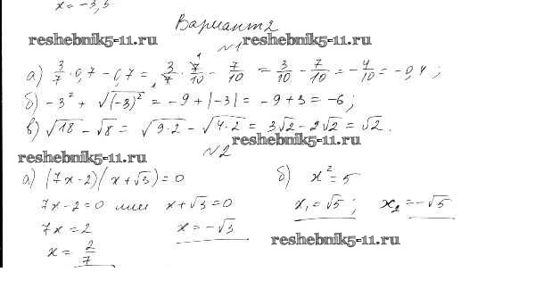Готовая домашняя работа с ответами по Алгебре за 9 класс Евстафьева, Карп Дидактические материалы Просвещение 2017 ФГОС - П-1. Действительные числа Вариант 2