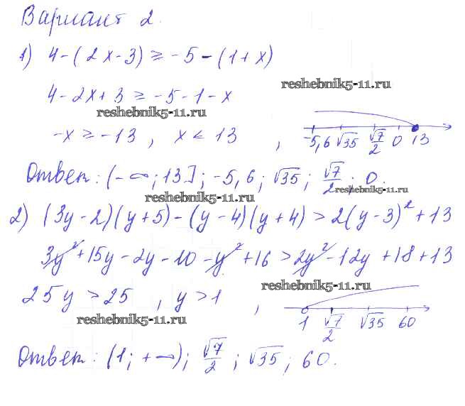 Готовая домашняя работа с ответами по Алгебре за 9 класс Евстафьева, Карп Дидактические материалы Просвещение 2017 ФГОС - П-10. Решение линейных неравенств Вариант 2