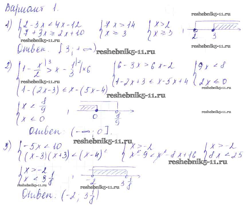 Готовая домашняя работа с ответами по Алгебре за 9 класс Евстафьева, Карп Дидактические материалы Просвещение 2017 ФГОС - П-13. Решение систем неравенств Вариант 1