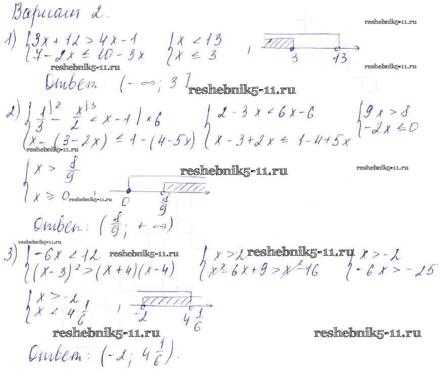 Готовая домашняя работа с ответами по Алгебре за 9 класс Евстафьева, Карп Дидактические материалы Просвещение 2017 ФГОС - П-13. Решение систем неравенств Вариант 2