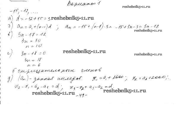 Готовая домашняя работа с ответами по Алгебре за 9 класс Евстафьева, Карп Дидактические материалы Просвещение 2017 ФГОС - П-43. Арифметическая прогрессия Вариант 1