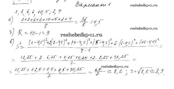 Готовая домашняя работа с ответами по Алгебре за 9 класс Евстафьева, Карп Дидактические материалы Просвещение 2017 ФГОС - П-50. Стандартное отклонение Вариант 1