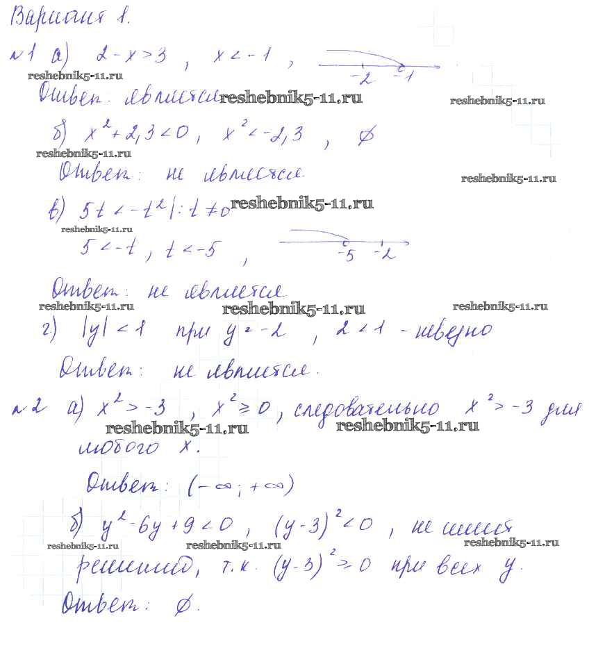 Готовая домашняя работа с ответами по Алгебре за 9 класс Евстафьева, Карп Дидактические материалы Просвещение 2017 ФГОС - П-7. Решение линейных неравенств Вариант 1