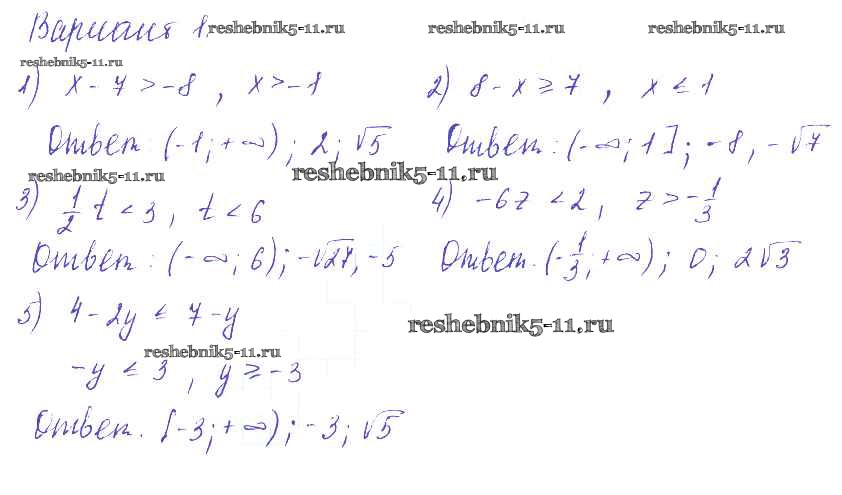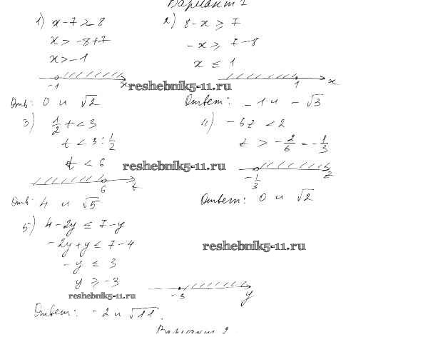 Готовая домашняя работа с ответами по Алгебре за 9 класс Евстафьева, Карп Дидактические материалы Просвещение 2017 ФГОС - П-8. Решение линейных неравенств Вариант 1