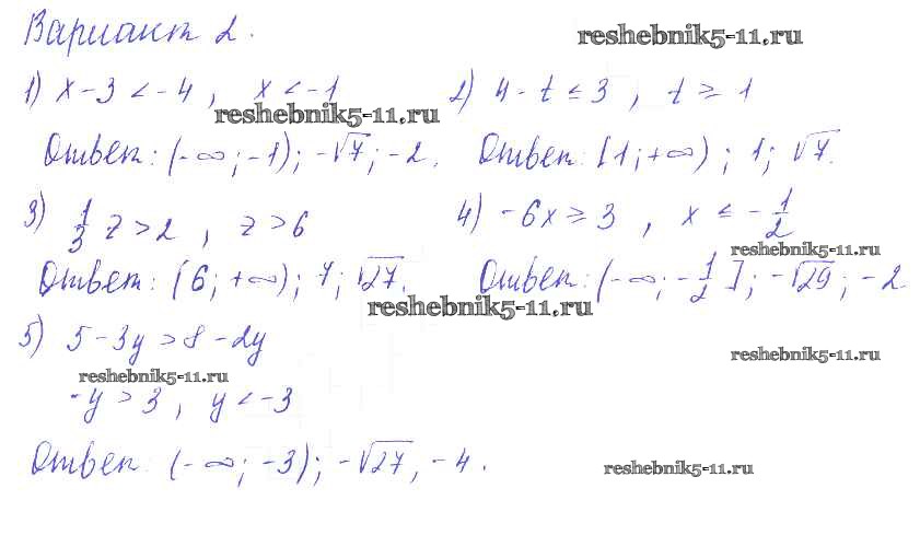 Готовая домашняя работа с ответами по Алгебре за 9 класс Евстафьева, Карп Дидактические материалы Просвещение 2017 ФГОС - П-8. Решение линейных неравенств Вариант 2