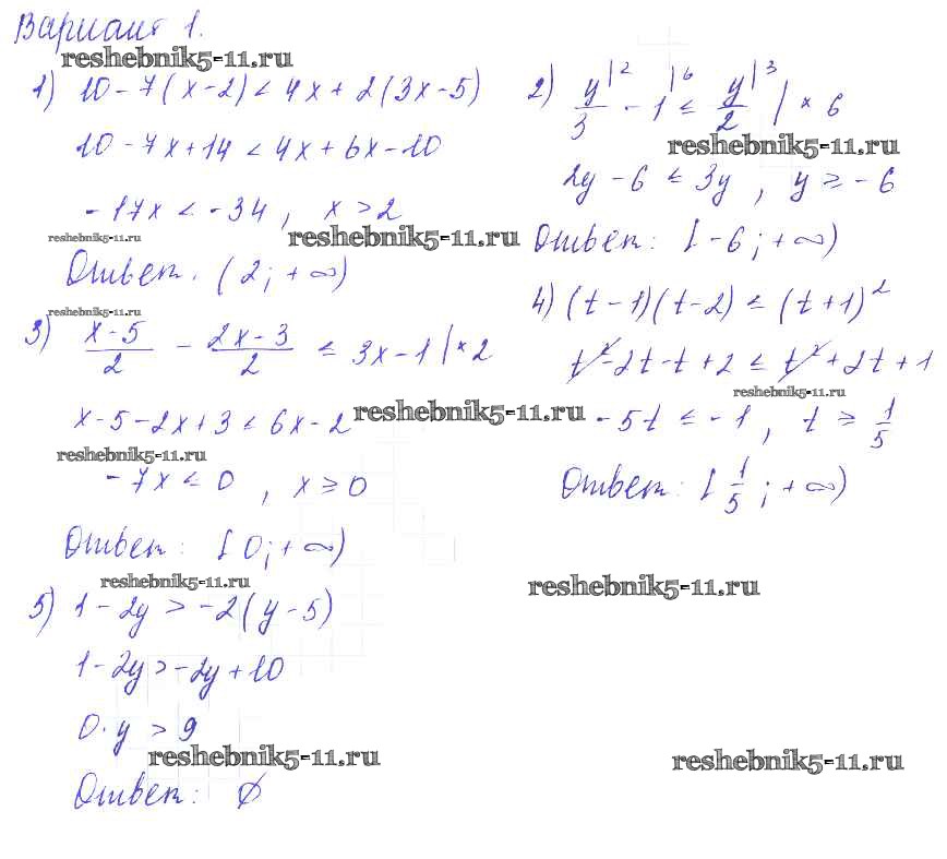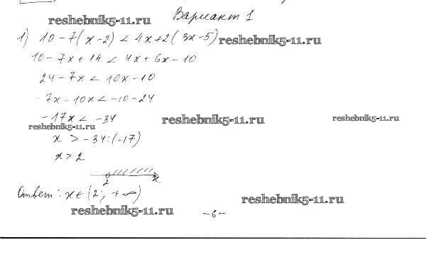 Готовая домашняя работа с ответами по Алгебре за 9 класс Евстафьева, Карп Дидактические материалы Просвещение 2017 ФГОС - П-9. Решение линейных неравенств Вариант 1