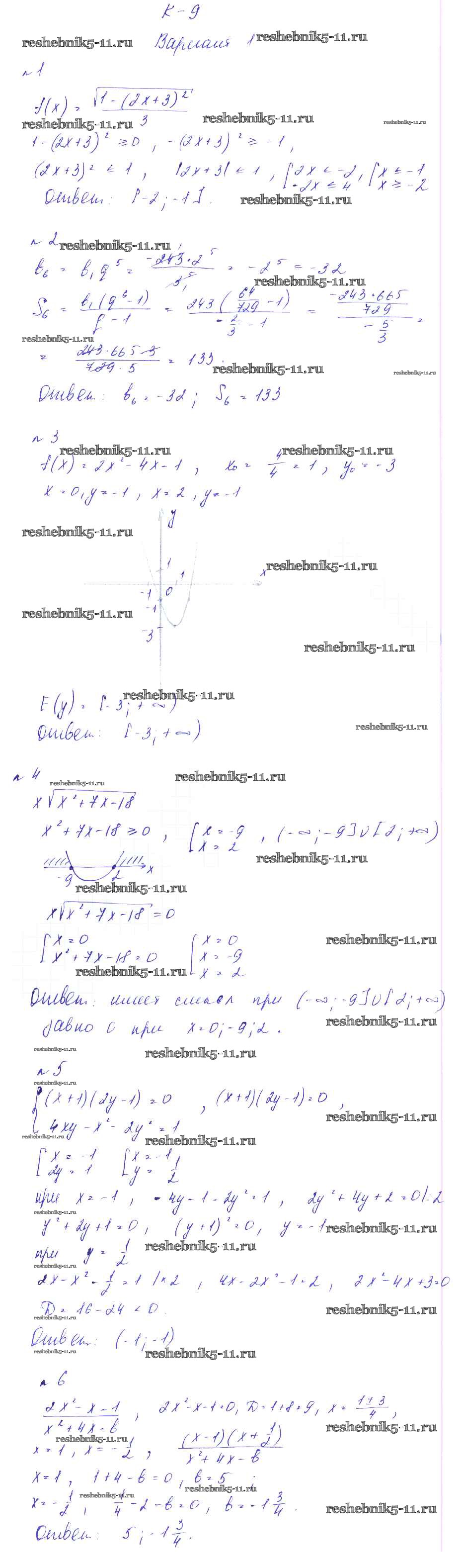 Готовая домашняя работа с ответами по Алгебре за 9 класс Звавич, Дьяконова Дидактические материалы УМК Экзамен 2017 ФГОС - КР-9 вариант 1
