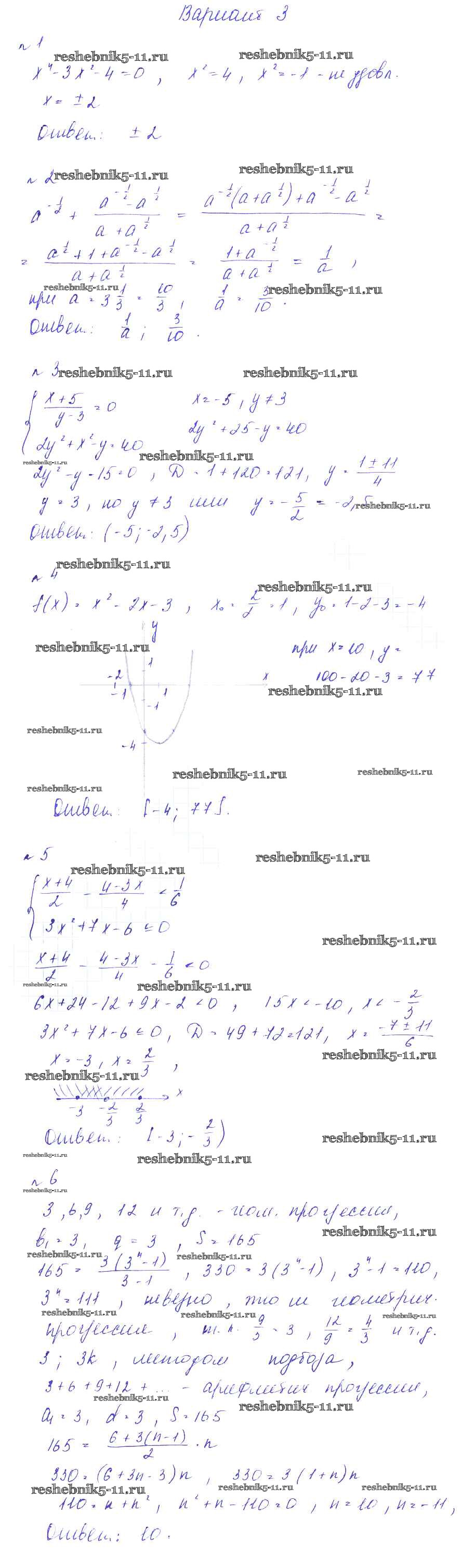 Готовая домашняя работа с ответами по Алгебре за 9 класс Звавич, Дьяконова Дидактические материалы УМК Экзамен 2017 ФГОС - КР-9 вариант 3