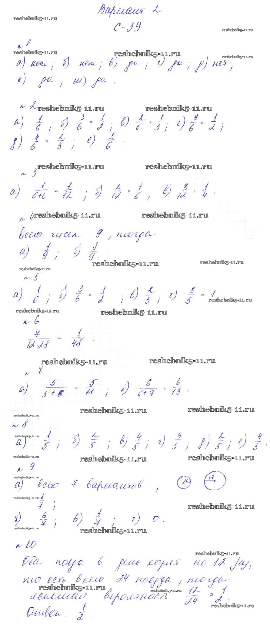 Решебник / самостоятельная работа / ср-39 / вариант 2