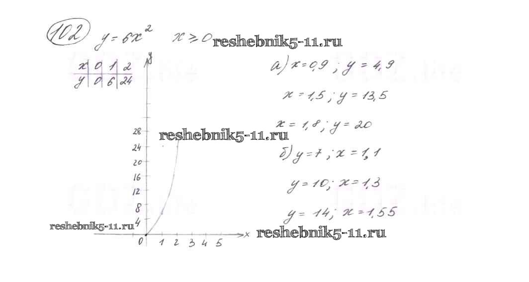 Готовая домашняя работа с ответами по Алгебре за 9 класс Макарычев, Миндюк, Нешков, Суворова Учебник Просвещение 2014 ФГОС - Глава 1. Квадратичная функция (упражнения) 102