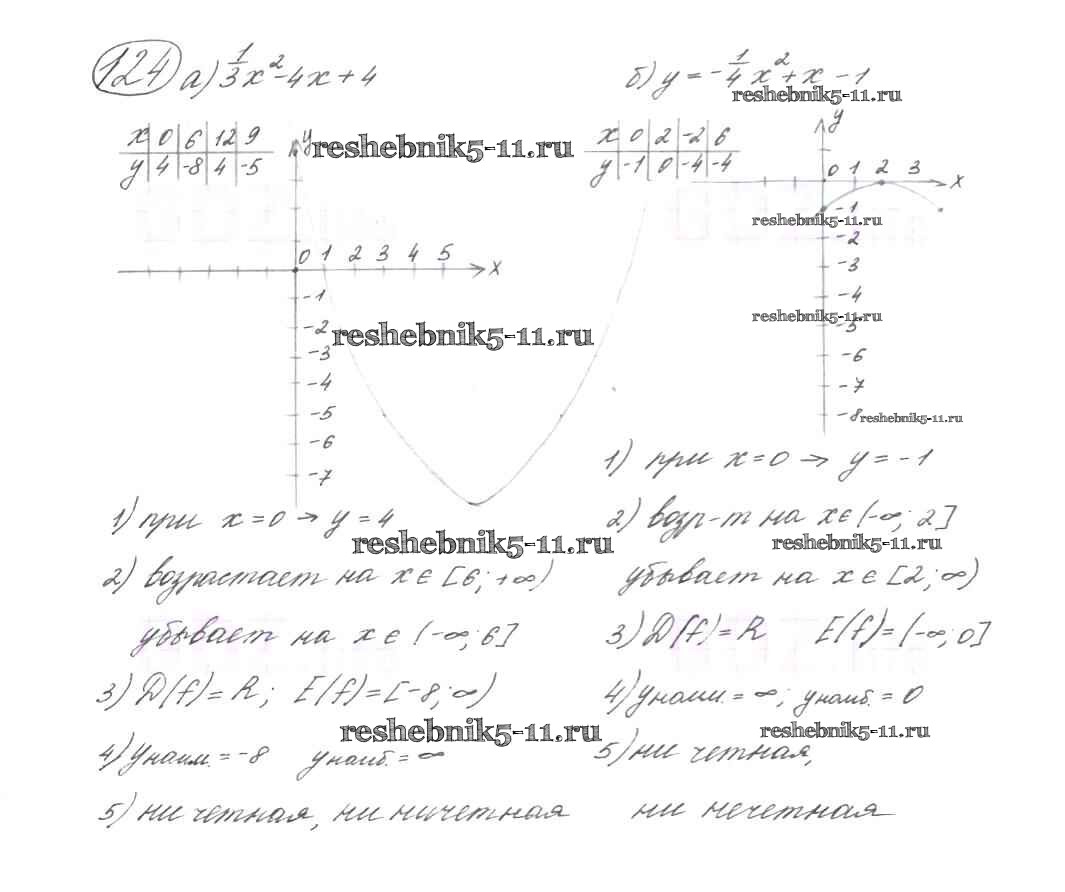 Готовая домашняя работа с ответами по Алгебре за 9 класс Макарычев, Миндюк, Нешков, Суворова Учебник Просвещение 2014 ФГОС - Глава 1. Квадратичная функция (упражнения) 124