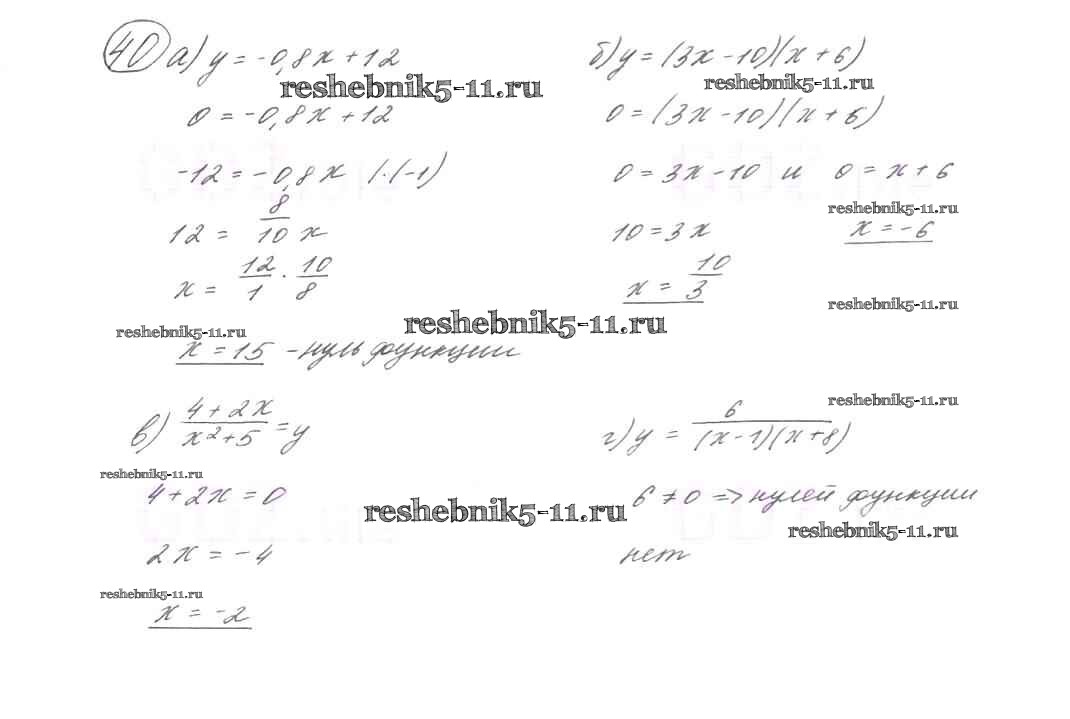 Готовая домашняя работа с ответами по Алгебре за 9 класс Макарычев, Миндюк, Нешков, Суворова Учебник Просвещение 2014 ФГОС - Глава 1. Квадратичная функция (упражнения) 40