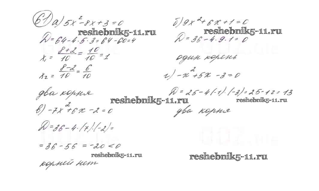 Готовая домашняя работа с ответами по Алгебре за 9 класс Макарычев, Миндюк, Нешков, Суворова Учебник Просвещение 2014 ФГОС - Глава 1. Квадратичная функция (упражнения) 61