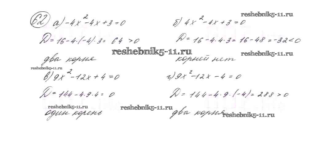 Готовая домашняя работа с ответами по Алгебре за 9 класс Макарычев, Миндюк, Нешков, Суворова Учебник Просвещение 2014 ФГОС - Глава 1. Квадратичная функция (упражнения) 62