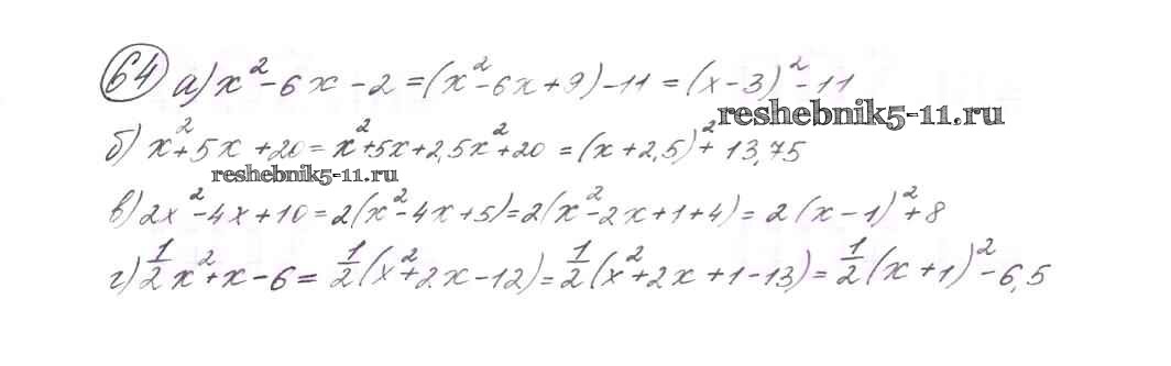 Готовая домашняя работа с ответами по Алгебре за 9 класс Макарычев, Миндюк, Нешков, Суворова Учебник Просвещение 2014 ФГОС - Глава 1. Квадратичная функция (упражнения) 64