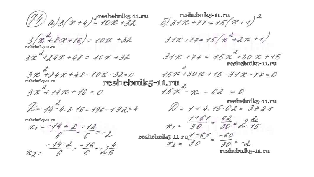 Готовая домашняя работа с ответами по Алгебре за 9 класс Макарычев, Миндюк, Нешков, Суворова Учебник Просвещение 2014 ФГОС - Глава 1. Квадратичная функция (упражнения) 74