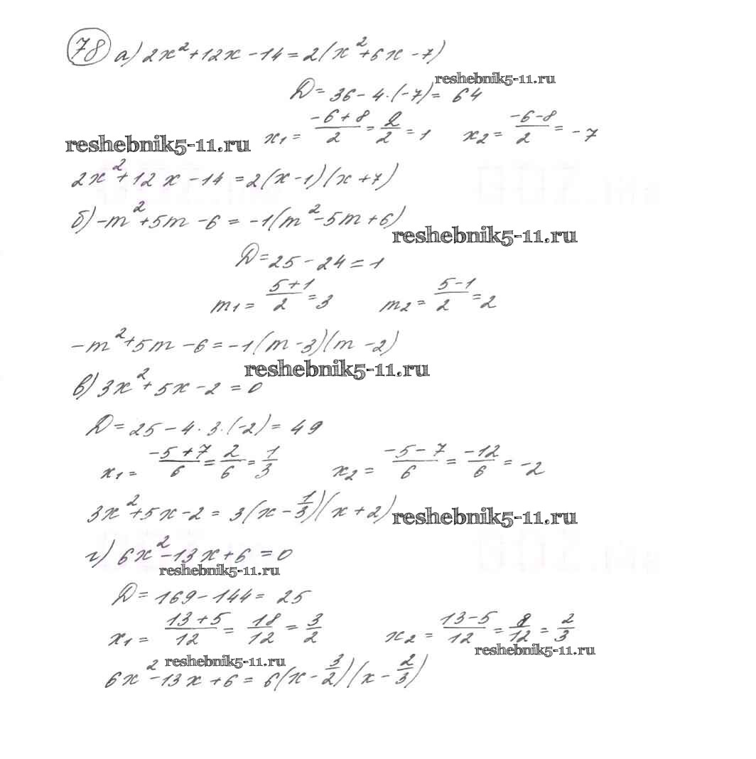 Готовая домашняя работа с ответами по Алгебре за 9 класс Макарычев, Миндюк, Нешков, Суворова Учебник Просвещение 2014 ФГОС - Глава 1. Квадратичная функция (упражнения) 78