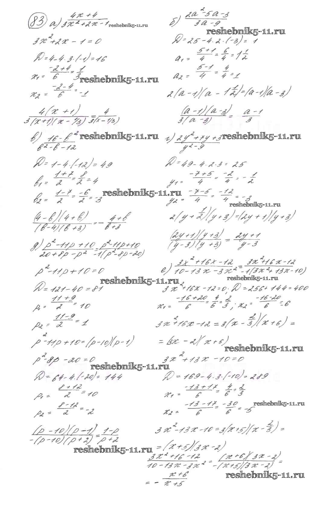 Готовая домашняя работа с ответами по Алгебре за 9 класс Макарычев, Миндюк, Нешков, Суворова Учебник Просвещение 2014 ФГОС - Глава 1. Квадратичная функция (упражнения) 83