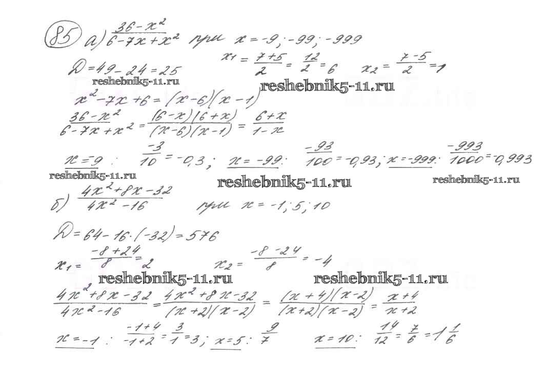 Готовая домашняя работа с ответами по Алгебре за 9 класс Макарычев, Миндюк, Нешков, Суворова Учебник Просвещение 2014 ФГОС - Глава 1. Квадратичная функция (упражнения) 85