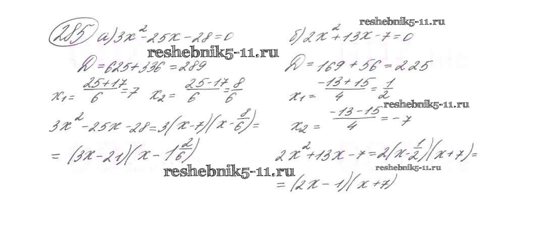 Готовая домашняя работа с ответами по Алгебре за 9 класс Макарычев, Миндюк, Нешков, Суворова Учебник Просвещение 2014 ФГОС - Глава 2. Уравнения и неравенства с одной переменной (упражнения) 285