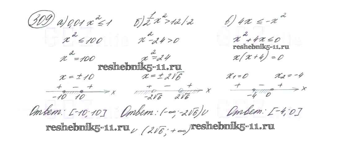 Готовая домашняя работа с ответами по Алгебре за 9 класс Макарычев, Миндюк, Нешков, Суворова Учебник Просвещение 2014 ФГОС - Глава 2. Уравнения и неравенства с одной переменной (упражнения) 309