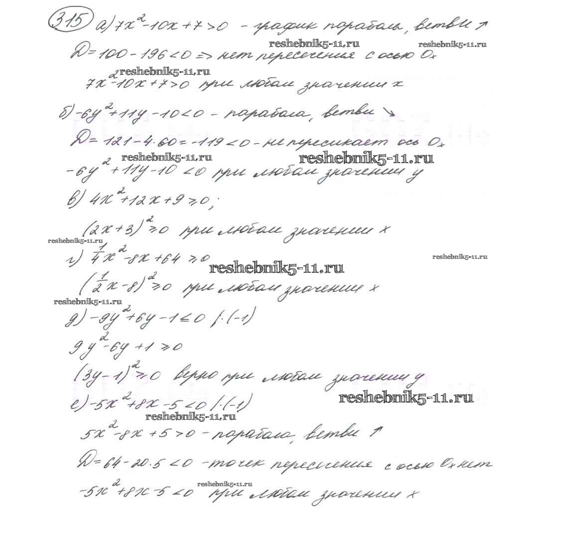 Готовая домашняя работа с ответами по Алгебре за 9 класс Макарычев, Миндюк, Нешков, Суворова Учебник Просвещение 2014 ФГОС - Глава 2. Уравнения и неравенства с одной переменной (упражнения) 315