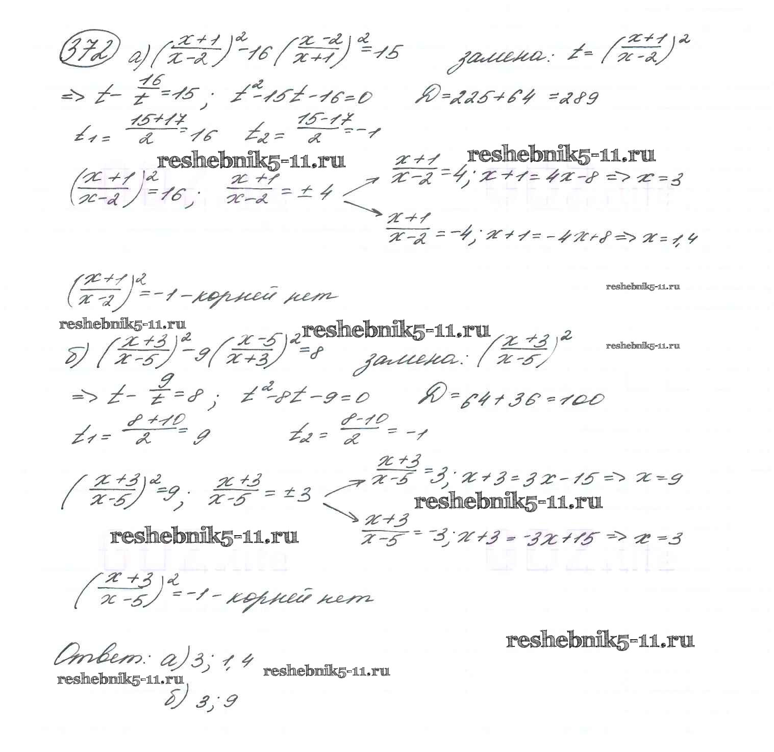 Готовая домашняя работа с ответами по Алгебре за 9 класс Макарычев, Миндюк, Нешков, Суворова Учебник Просвещение 2014 ФГОС - Глава 2. Уравнения и неравенства с одной переменной (упражнения) 372