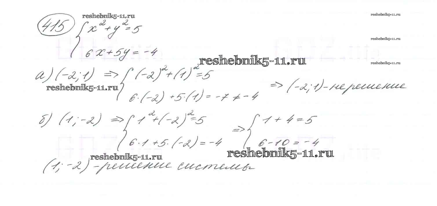 Готовая домашняя работа с ответами по Алгебре за 9 класс Макарычев, Миндюк, Нешков, Суворова Учебник Просвещение 2014 ФГОС - Глава 3. Уравнения и неравенства с двумя переменными (упражнения) 415