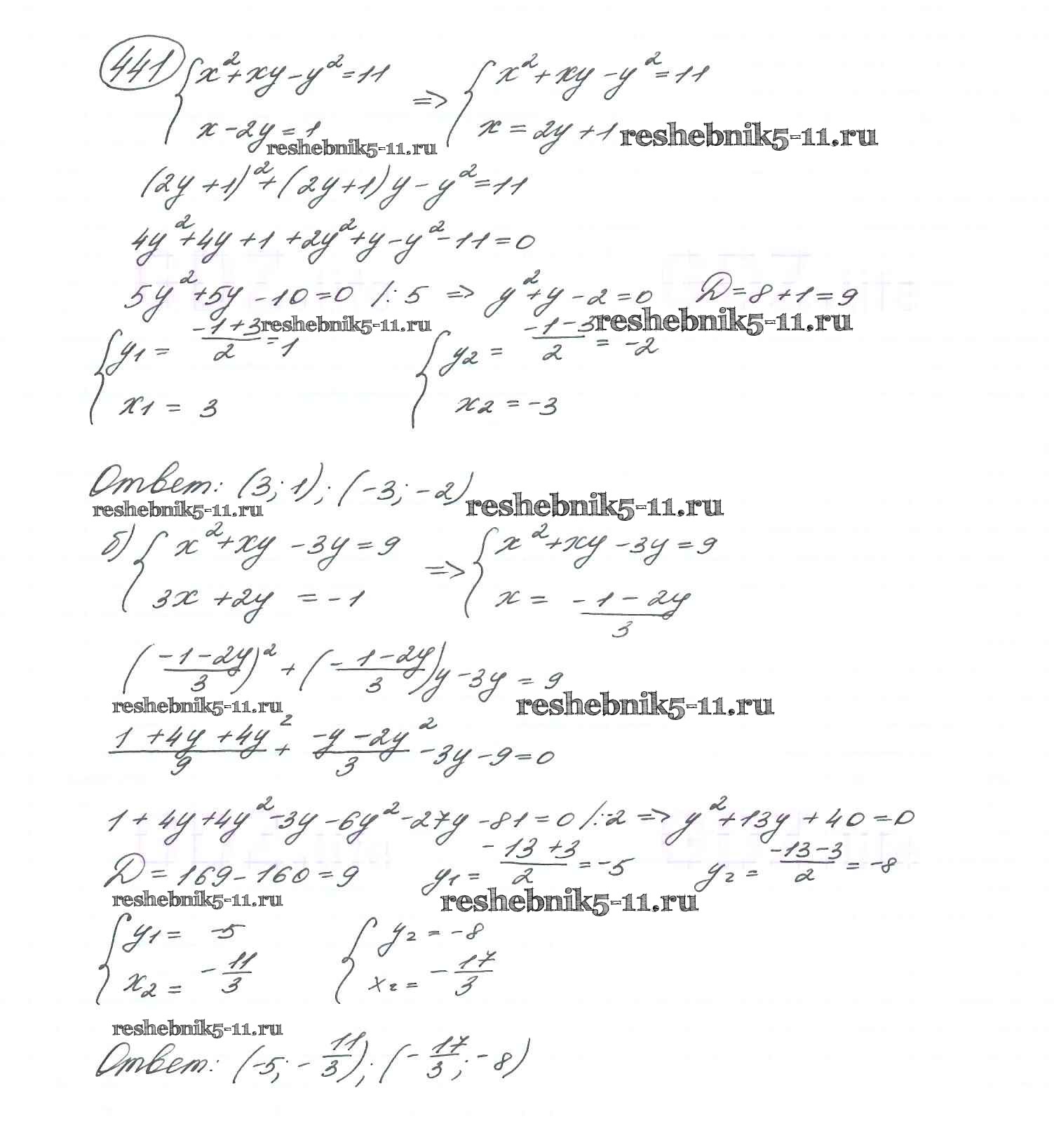 Готовая домашняя работа с ответами по Алгебре за 9 класс Макарычев, Миндюк, Нешков, Суворова Учебник Просвещение 2014 ФГОС - Глава 3. Уравнения и неравенства с двумя переменными (упражнения) 441