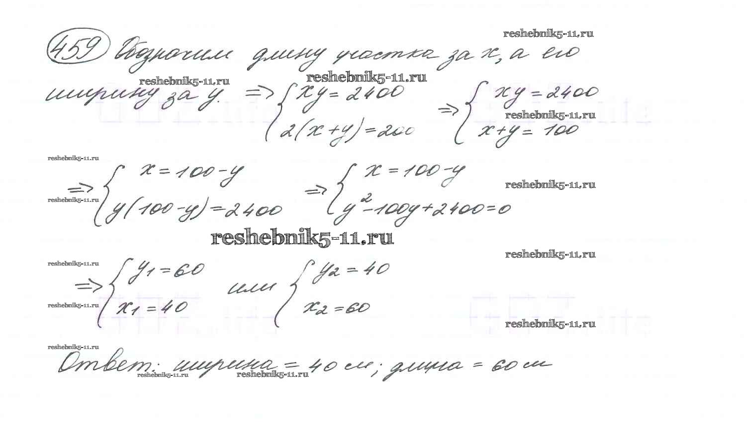 Готовая домашняя работа с ответами по Алгебре за 9 класс Макарычев, Миндюк, Нешков, Суворова Учебник Просвещение 2014 ФГОС - Глава 3. Уравнения и неравенства с двумя переменными (упражнения) 459