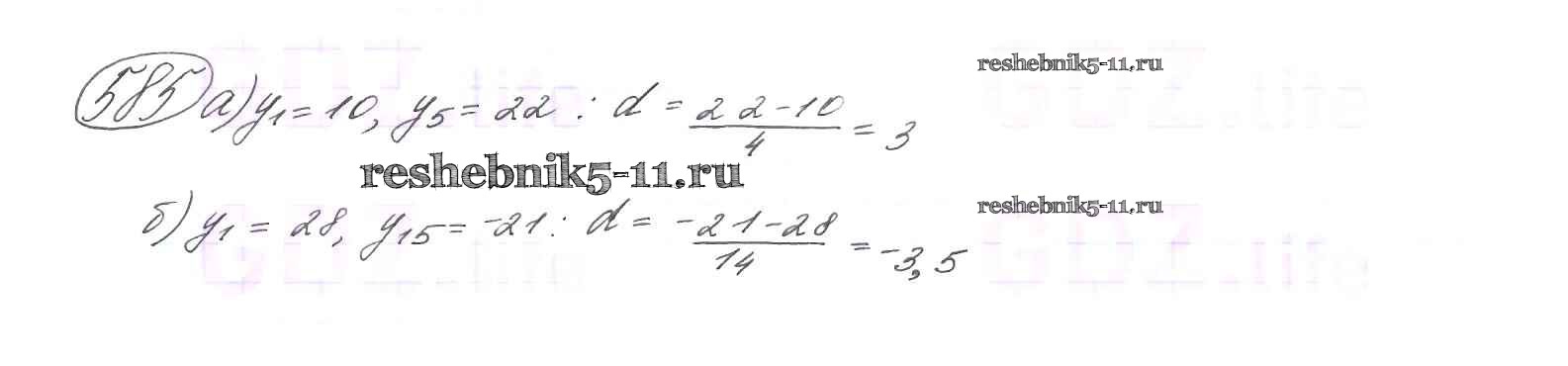Готовая домашняя работа с ответами по Алгебре за 9 класс Макарычев, Миндюк, Нешков, Суворова Учебник Просвещение 2014 ФГОС - Глава 4. Арифметическая и геометрическая прогрессии (упражнения) 585