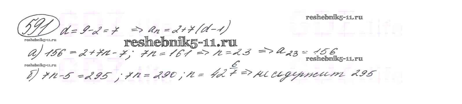 Готовая домашняя работа с ответами по Алгебре за 9 класс Макарычев, Миндюк, Нешков, Суворова Учебник Просвещение 2014 ФГОС - Глава 4. Арифметическая и геометрическая прогрессии (упражнения) 591