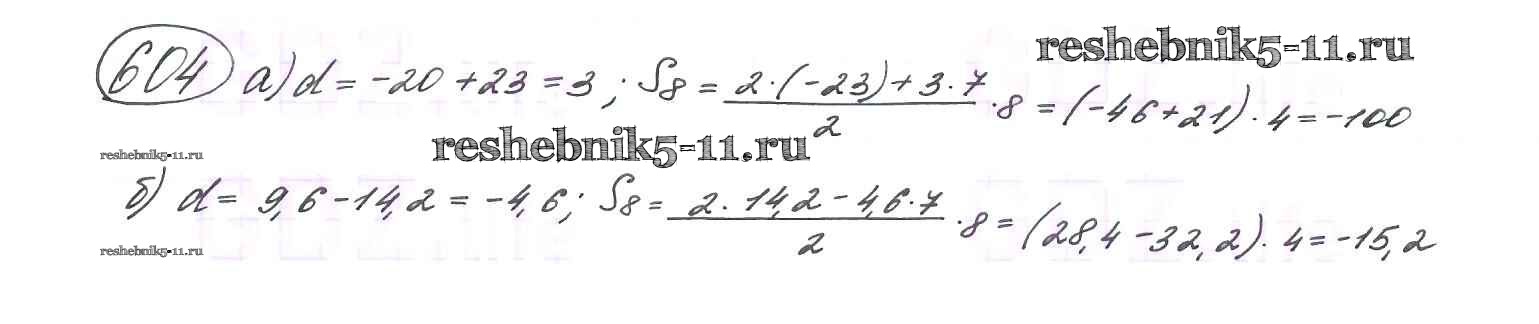 Готовая домашняя работа с ответами по Алгебре за 9 класс Макарычев, Миндюк, Нешков, Суворова Учебник Просвещение 2014 ФГОС - Глава 4. Арифметическая и геометрическая прогрессии (упражнения) 604