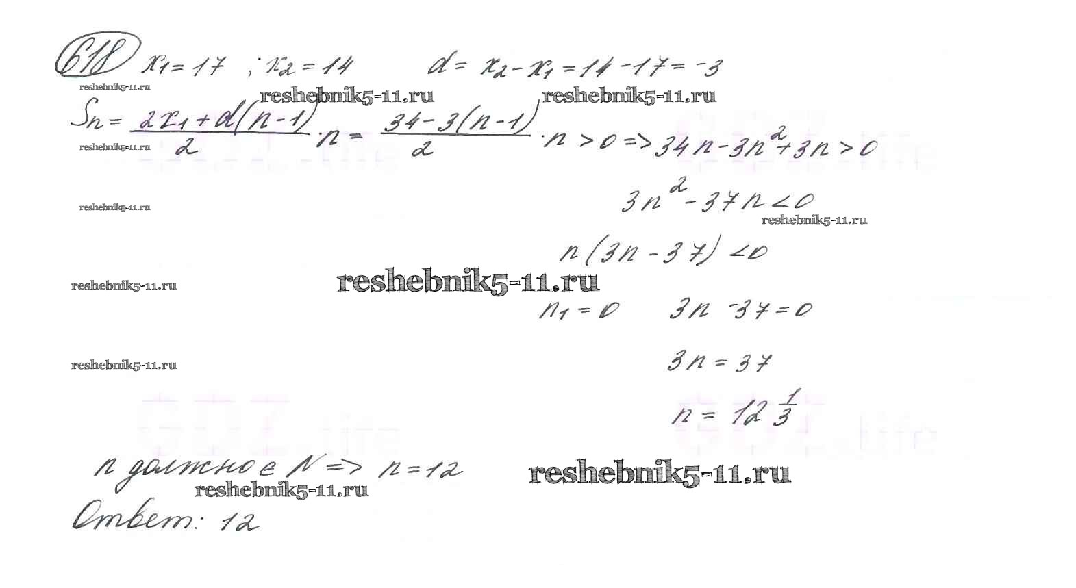 Готовая домашняя работа с ответами по Алгебре за 9 класс Макарычев, Миндюк, Нешков, Суворова Учебник Просвещение 2014 ФГОС - Глава 4. Арифметическая и геометрическая прогрессии (упражнения) 618