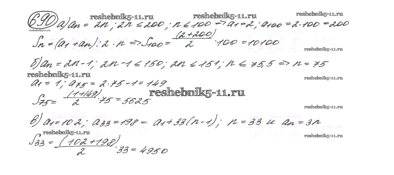 Готовая домашняя работа с ответами по Алгебре за 9 класс Макарычев, Миндюк, Нешков, Суворова Учебник Просвещение 2014 ФГОС - Глава 4. Арифметическая и геометрическая прогрессии (упражнения) 690