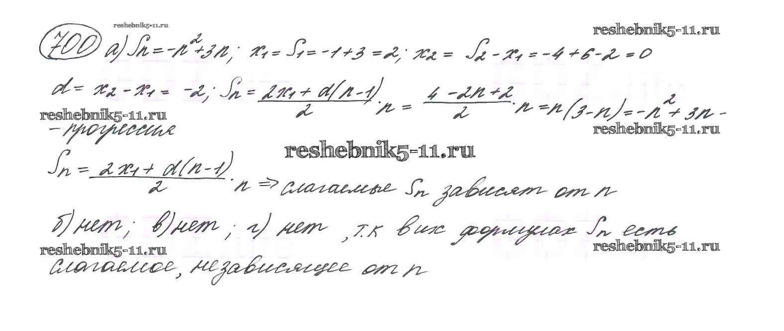 Готовая домашняя работа с ответами по Алгебре за 9 класс Макарычев, Миндюк, Нешков, Суворова Учебник Просвещение 2014 ФГОС - Глава 4. Арифметическая и геометрическая прогрессии (упражнения) 700