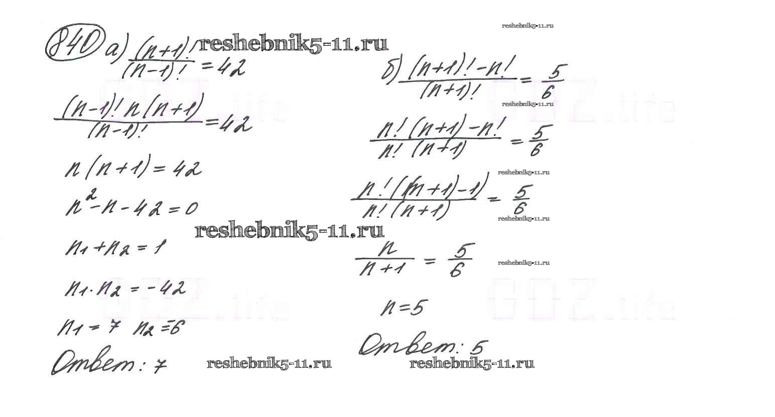 Готовая домашняя работа с ответами по Алгебре за 9 класс Макарычев, Миндюк, Нешков, Суворова Учебник Просвещение 2014 ФГОС - Глава 5. Элементы комбинаторики и теории вероятностей (упражнения) 840