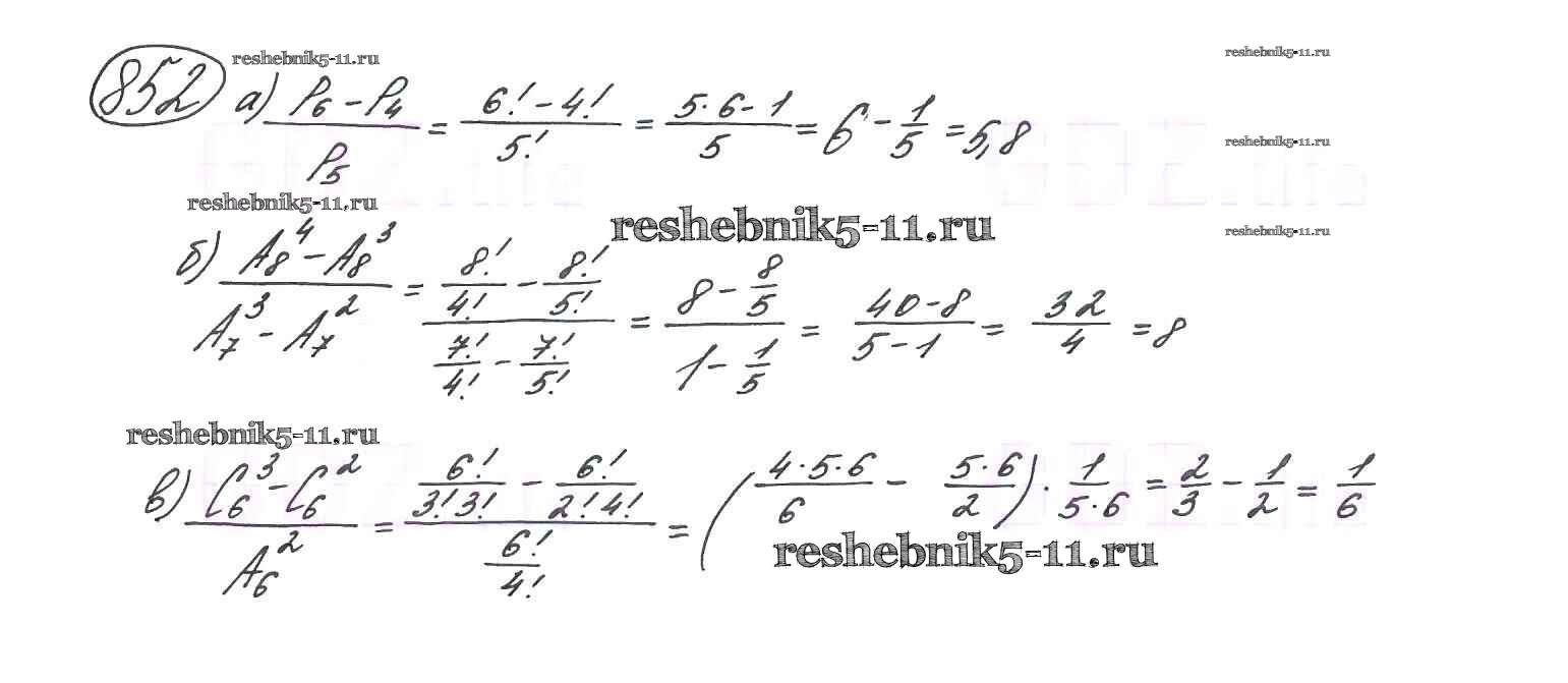 Готовая домашняя работа с ответами по Алгебре за 9 класс Макарычев, Миндюк, Нешков, Суворова Учебник Просвещение 2014 ФГОС - Глава 5. Элементы комбинаторики и теории вероятностей (упражнения) 852