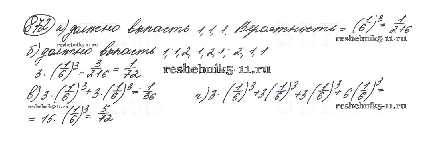 Готовая домашняя работа с ответами по Алгебре за 9 класс Макарычев, Миндюк, Нешков, Суворова Учебник Просвещение 2014 ФГОС - Глава 5. Элементы комбинаторики и теории вероятностей (упражнения) 872