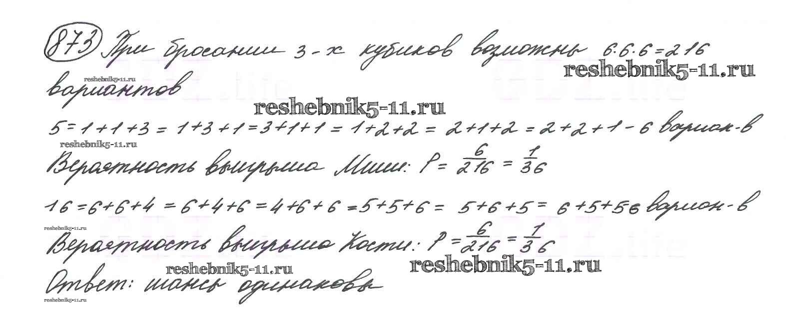 Готовая домашняя работа с ответами по Алгебре за 9 класс Макарычев, Миндюк, Нешков, Суворова Учебник Просвещение 2014 ФГОС - Глава 5. Элементы комбинаторики и теории вероятностей (упражнения) 873