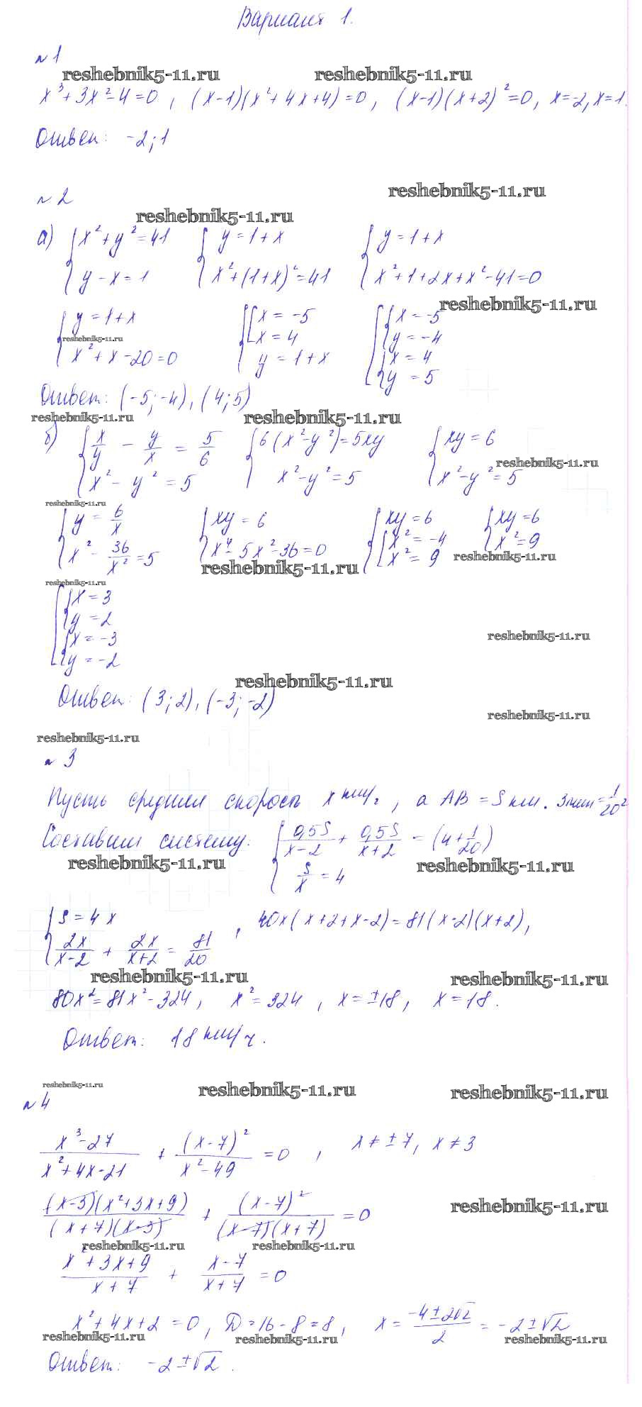 Готовая домашняя работа с ответами по Алгебре за 9 класс Зив, Гольдич Дидактические материалы Виктория плюс 2013 ФГОС - КР-1. Алгебраические уравнения. Системы алгебраических уравнений вариант 1