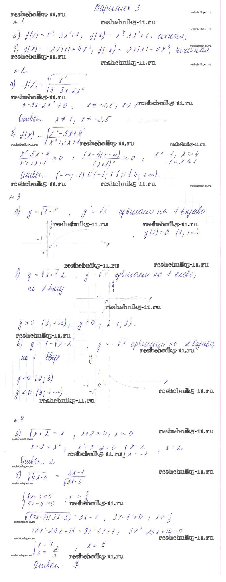 Готовая домашняя работа с ответами по Алгебре за 9 класс Зив, Гольдич Дидактические материалы Виктория плюс 2013 ФГОС - КР-3. Степенная функция вариант 3