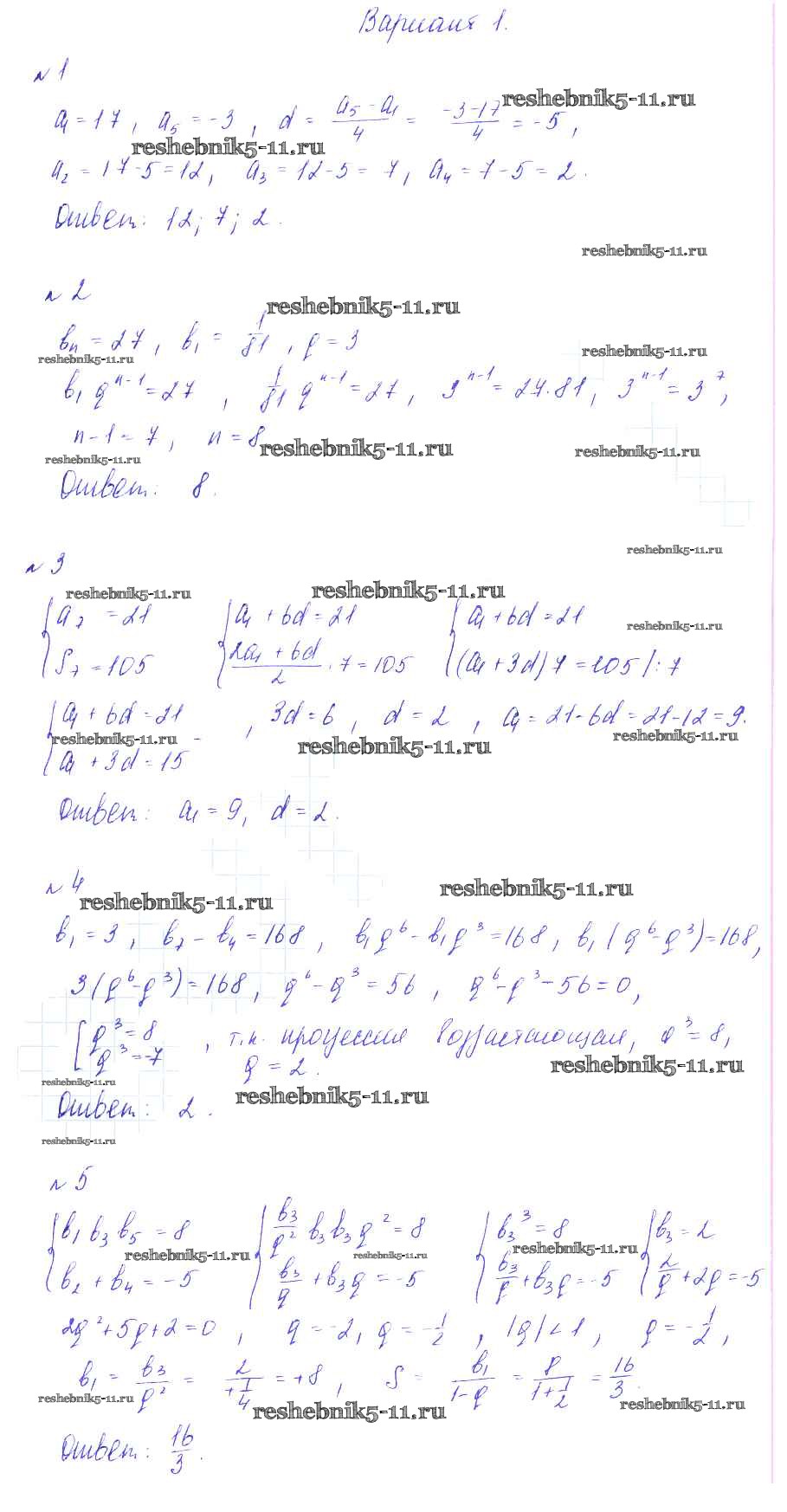 Готовая домашняя работа с ответами по Алгебре за 9 класс Зив, Гольдич Дидактические материалы Виктория плюс 2013 ФГОС - КР-6. Прогрессии вариант 1