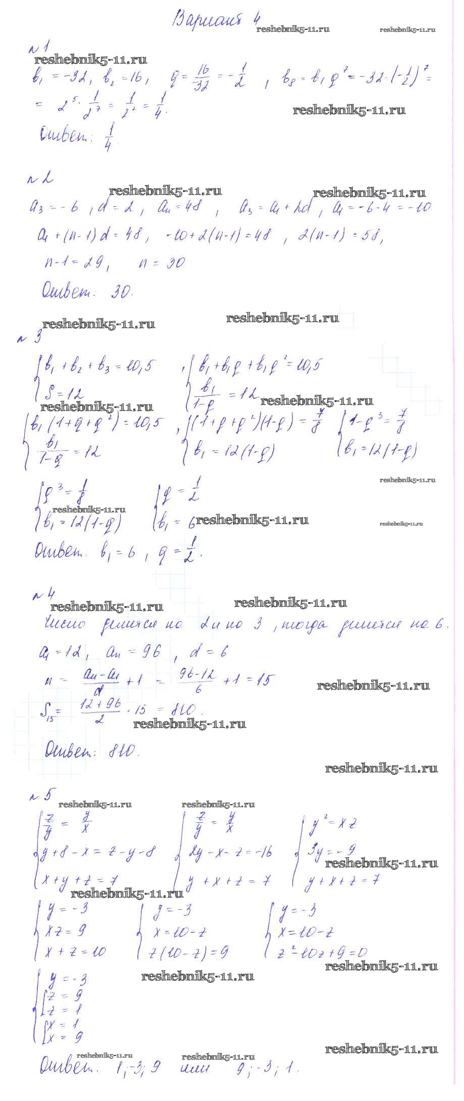 Готовая домашняя работа с ответами по Алгебре за 9 класс Зив, Гольдич Дидактические материалы Виктория плюс 2013 ФГОС - КР-6. Прогрессии вариант 4
