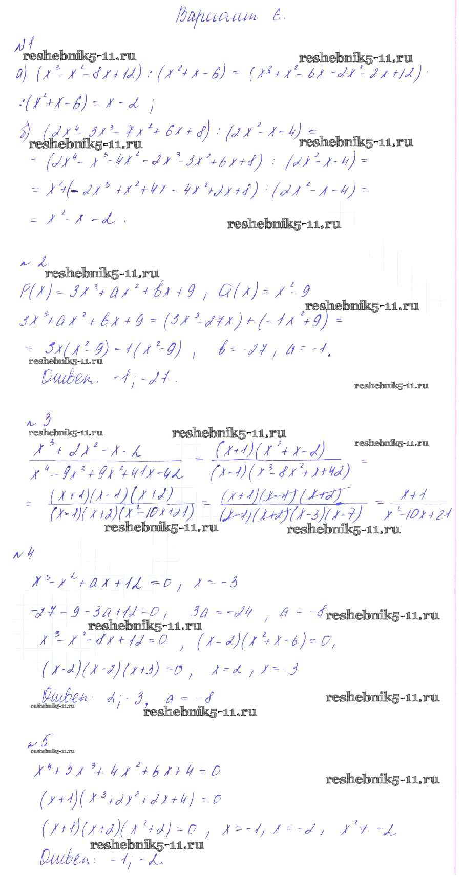 Готовая домашняя работа с ответами по Алгебре за 9 класс Зив, Гольдич Дидактические материалы Виктория плюс 2013 ФГОС - СР-1. Деление многочленов. Решение алгебраических уравнений вариант 6