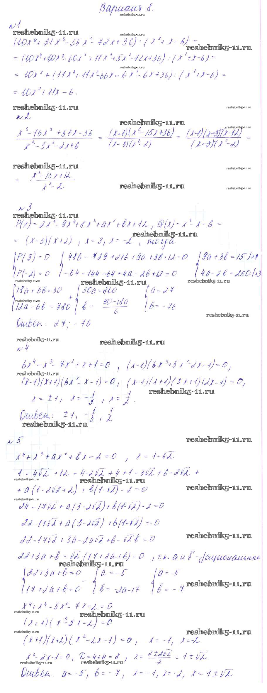 Готовая домашняя работа с ответами по Алгебре за 9 класс Зив, Гольдич Дидактические материалы Виктория плюс 2013 ФГОС - СР-1. Деление многочленов. Решение алгебраических уравнений вариант 8