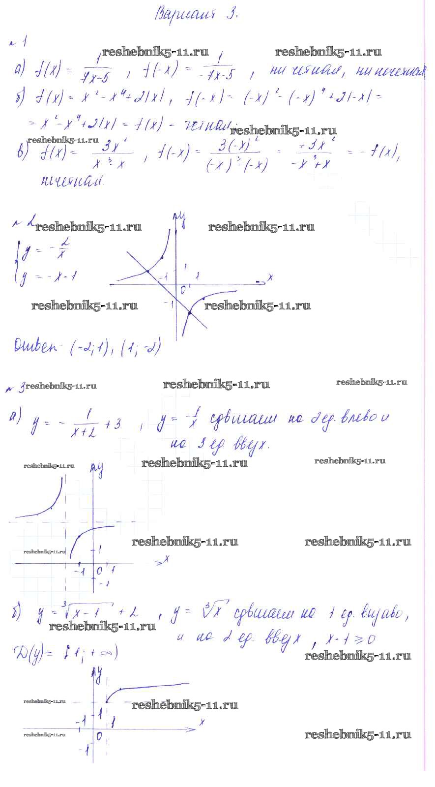 Готовая домашняя работа с ответами по Алгебре за 9 класс Зив, Гольдич Дидактические материалы Виктория плюс 2013 ФГОС - СР-10. Четность и нечетность функции. Функция у = k делить на х вариант 3