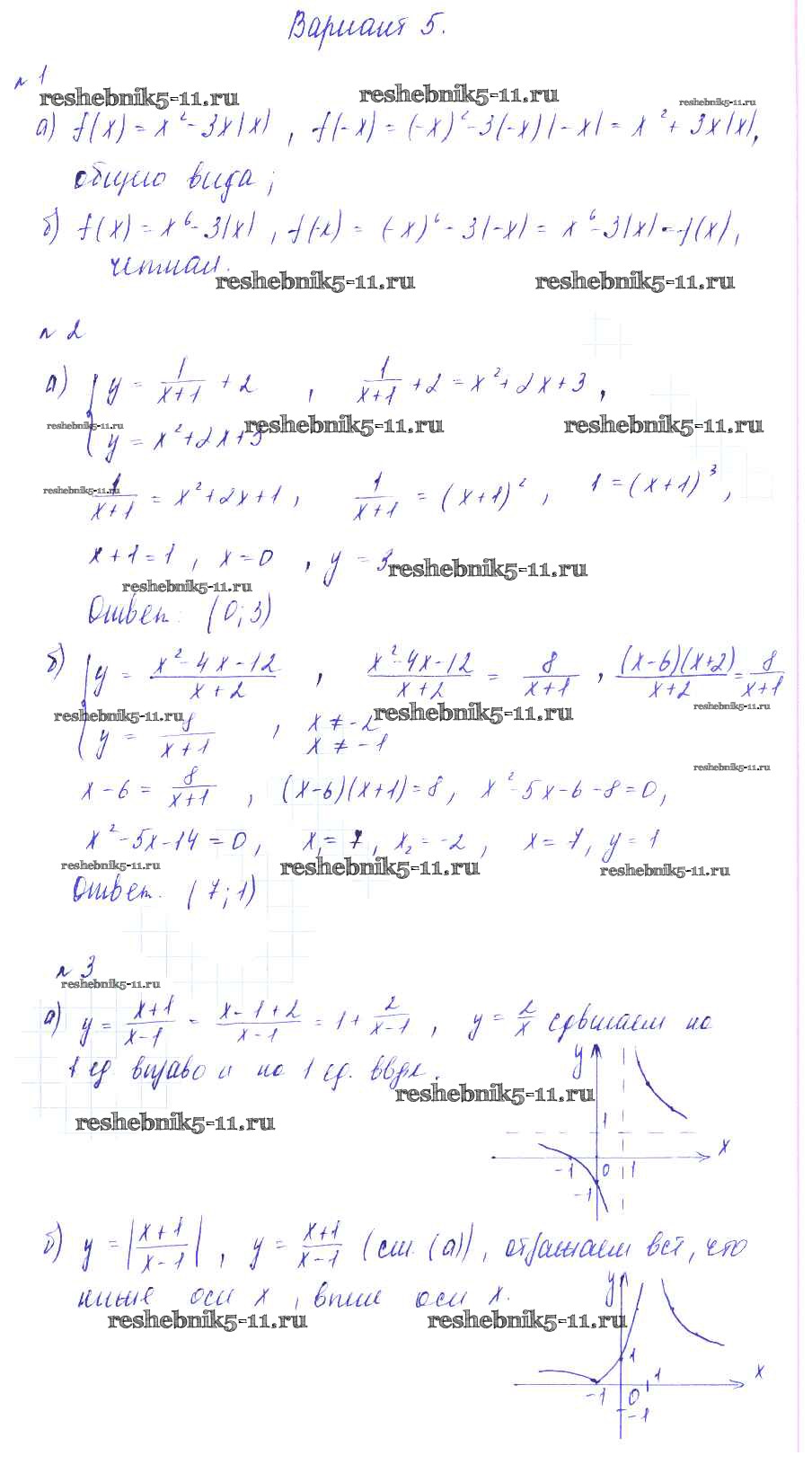 Готовая домашняя работа с ответами по Алгебре за 9 класс Зив, Гольдич Дидактические материалы Виктория плюс 2013 ФГОС - СР-10. Четность и нечетность функции. Функция у = k делить на х вариант 5
