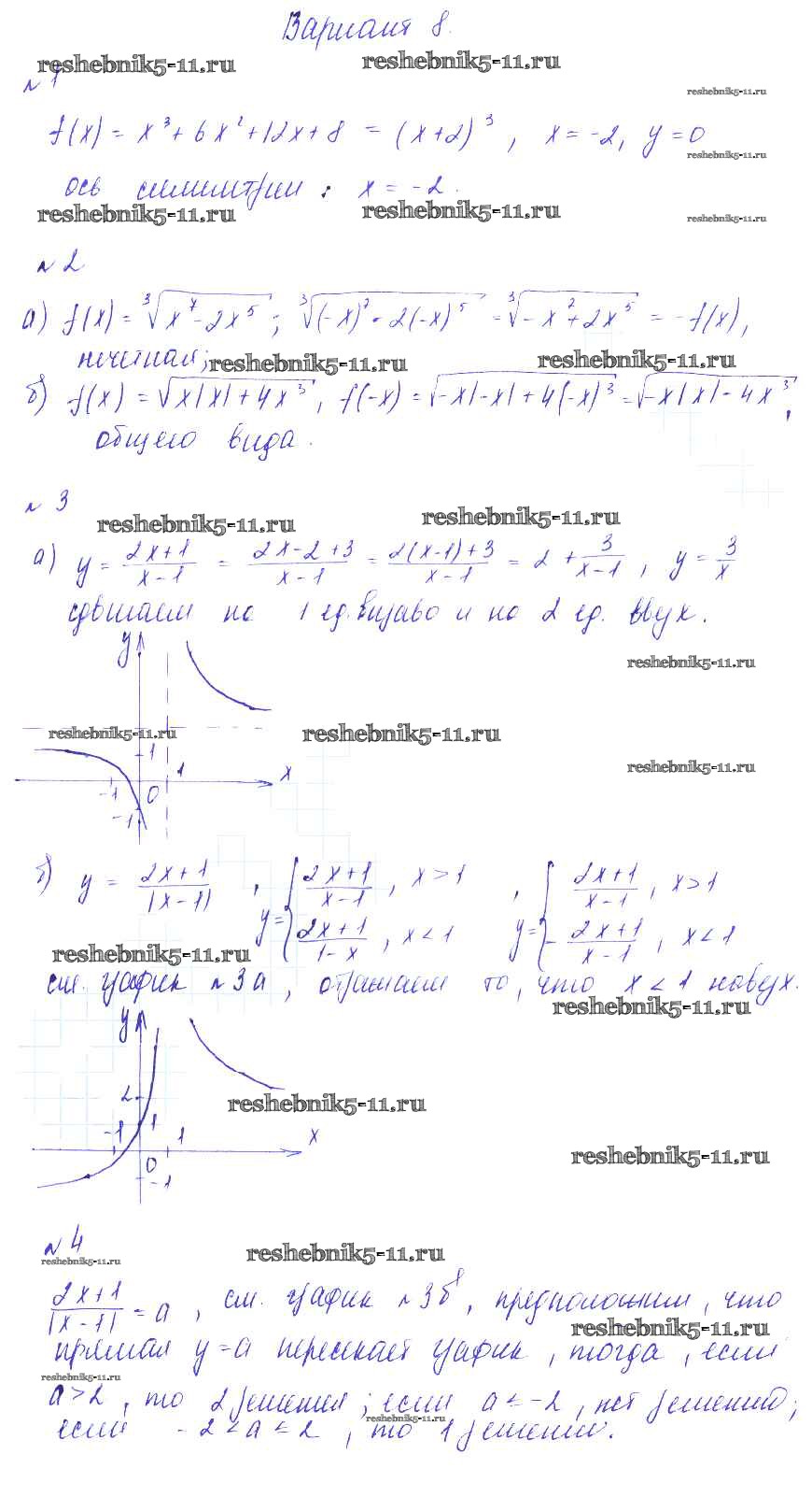 Готовая домашняя работа с ответами по Алгебре за 9 класс Зив, Гольдич Дидактические материалы Виктория плюс 2013 ФГОС - СР-10. Четность и нечетность функции. Функция у = k делить на х вариант 8