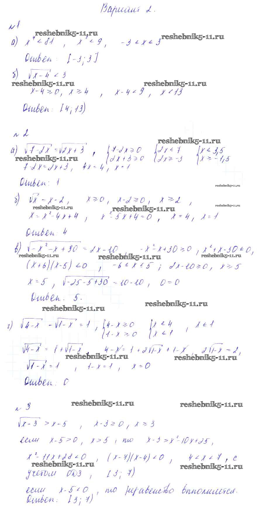 Готовая домашняя работа с ответами по Алгебре за 9 класс Зив, Гольдич Дидактические материалы Виктория плюс 2013 ФГОС - СР-11. Неравенства и уравнения, содержащие степень вариант 2
